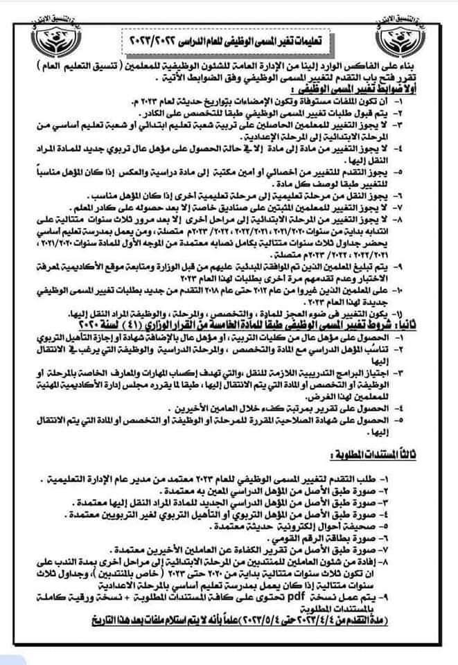 تعليمات تغيير المسمي الوظيفي للعام 2022 / 2023